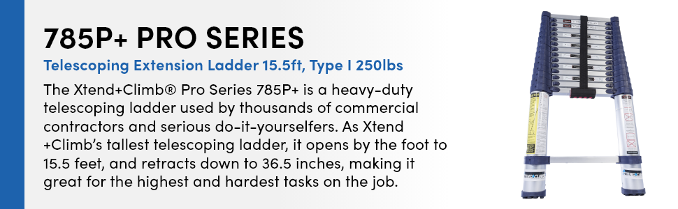 The Pro Series 785P+ Telescoping Ladder is a 12.5-foot professional-grade ladder engineered from aerospace aluminum alloy. It features a foot-by-foot extension with a no-pinch closure system, integrated carrying handle, and meets the latest 2019 ANSI/OSHA safety standards—perfect for millennial managers who demand durability, safety, and sleek design in their tools.