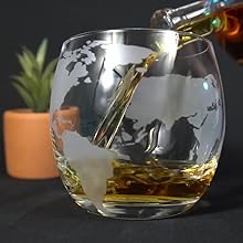 The Bezrat Etched Globe Whiskey Decanter Set is a luxurious addition to any home bar, featuring an intricately designed globe decanter and four matching 10 oz glasses, all elegantly displayed on a rich mahogany tray with convenient side handles. Perfect for gifting on special occasions or enhancing your own whiskey experience.