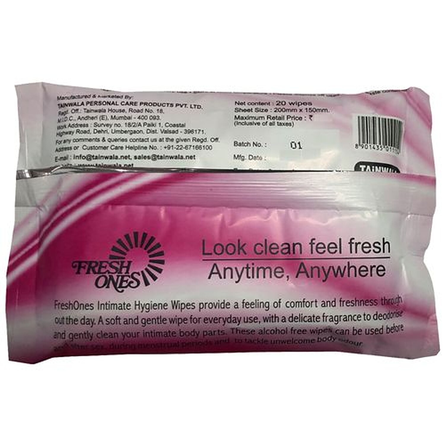About the Product @import url("https://www.desercart.com/static/froala_style_v2.min.css"); FreshOnes Intimate Hygiene Wipes are a woman's best friend for cleaning and deodorising intimate parts of their body. Ideal for use in the washroom and before or after sex. How to Use @import url("https://www.desercart.com/static/froala_style_v2.min.css"); It’s a dry tissue to remove the wet area of hand and body.