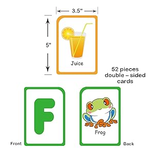 These Alphabet Flash Cards for Toddlers feature 52 double-sided cards made from durable cardboard, designed to teach young children the ABCs through engaging visuals and words. Each card measures 3.5 x 5 inches and comes in a reusable storage box, making it a perfect educational tool for home, school, or travel.