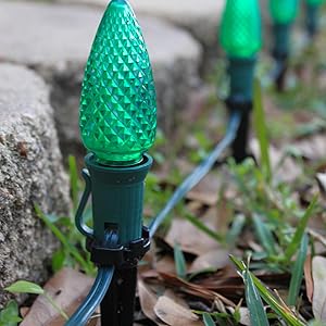 MIK SolutionsC9 LED Bulb (Pack of 25) LED Green Replacement Christmas Light Bulbs Faceted Retrofit Candle Shape Commercial Grade E17 Socket Roof Lights Bulbs