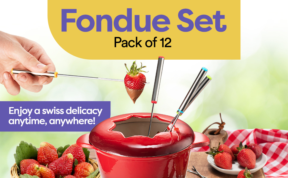 The KLEE UTENSILS 12-Piece Cast Iron Fondue Set is a complete solution for fondue lovers, featuring a stylish red pot, six color-coded forks, and an adjustable burner. With a generous 44 oz capacity and excellent heat retention, this set is perfect for entertaining and creating memorable dining experiences.