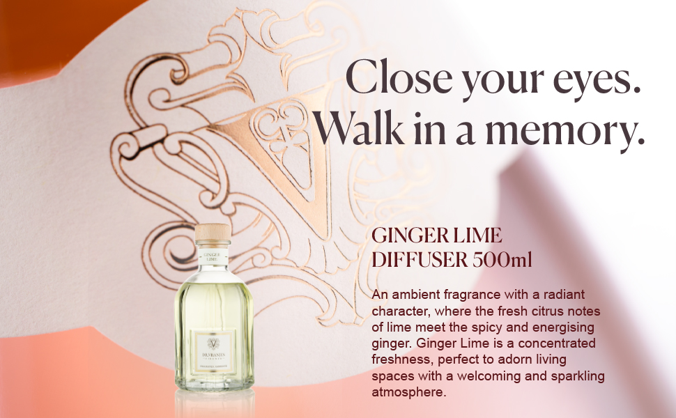 The Dr. Vranjes Ginger Lime Diffuser is a luxurious home fragrance that combines fresh lime and spicy ginger notes, crafted by Master Perfumer Dr. Paolo Vranjes in Italy. This 500 ml diffuser comes with a double pack of white sticks, elegantly designed to enhance any space while providing a unique olfactory experience inspired by Brazilian memories. Handmade in Tuscany, the glass bottle reflects exquisite craftsmanship and sophistication.