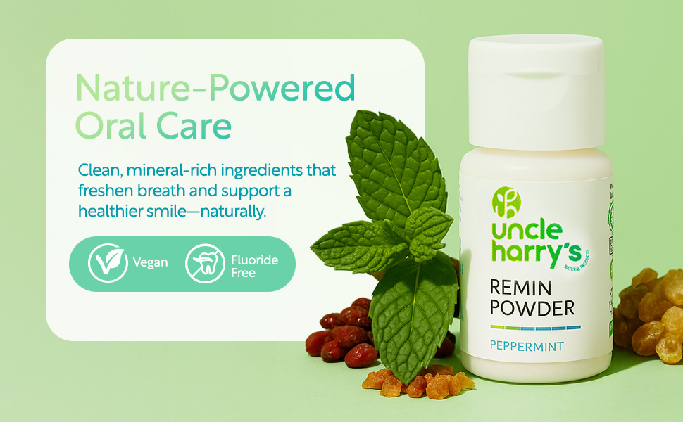Uncle Harry's Natural Remineralization Tooth Powder is a fluoride-free, vegan, and gluten-free oral care solution that strengthens tooth enamel by delivering calcium, magnesium, and phosphorus while maintaining an alkaline mouth environment. Infused with organic peppermint essential oil, it offers a refreshing, natural flavor. Packaged in an easy-to-use flip-top container, this eco-friendly powder is crafted with sustainably sourced, minimally processed ingredients, perfect for health-conscious professionals seeking clean, effective dental care.