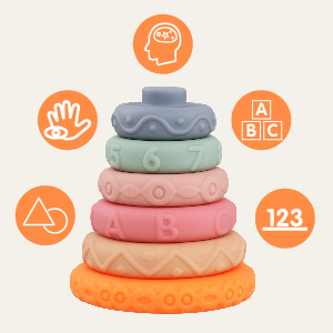 This set of 6 stacking rings is designed for babies aged 0-18 months, promoting sensory exploration and fine motor skills. Made from soft, BPA-free silicone, these toys are safe for teething and easy to clean, making them a perfect educational tool for toddlers.