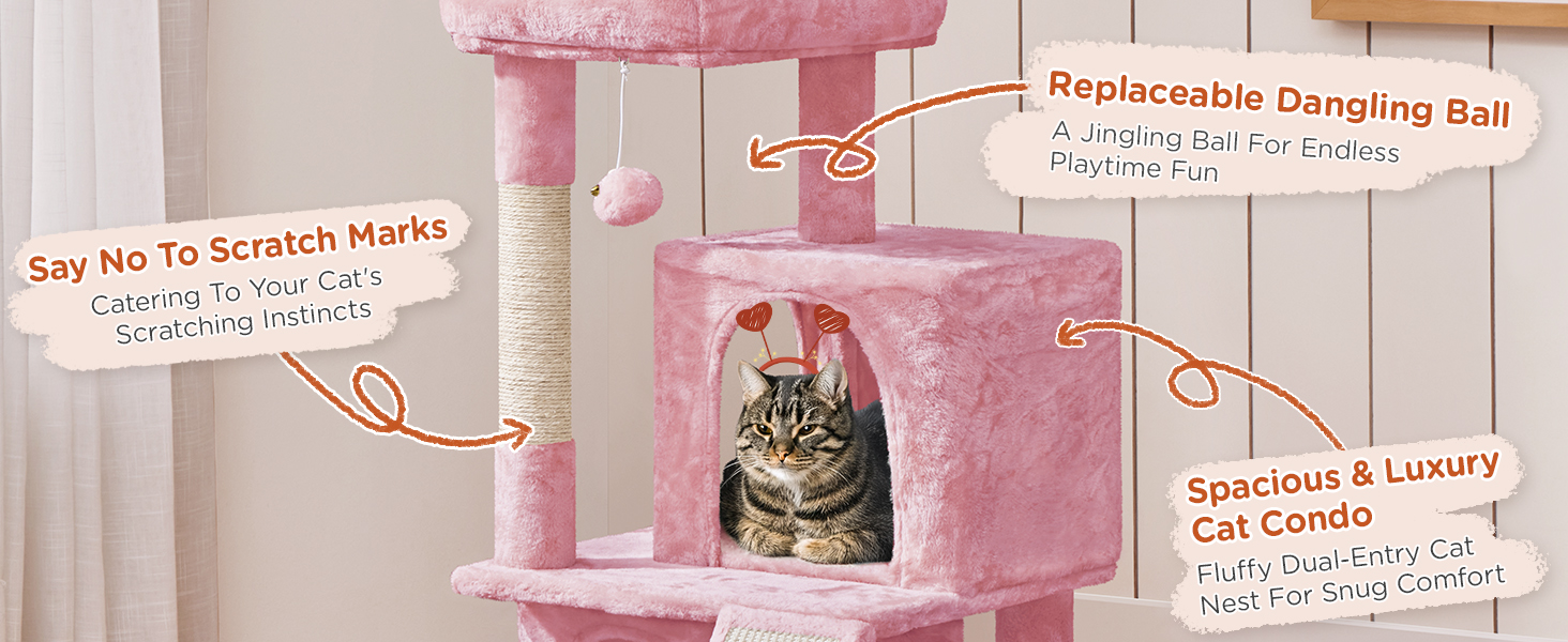 Very cute cat tree. Easy to assemble. Love the pink color. Nice height. Sturdy.