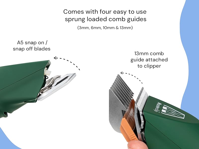 The MASTERCLIP Cordless Dog Clipper is a professional-grade grooming set designed specifically for all Spaniel breeds and coat types. Featuring precision-engineered Japanese steel blades, four guide combs for varied hair lengths, and dual fast-charging Li-ion batteries, it offers cordless freedom and salon-quality trims. Lightweight and ergonomically designed, this set includes essential accessories and is trusted by professional groomers for its durability and performance.