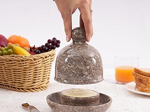 Butter Dish Cover Pot Handmade Marble Oceanic Gray Butter Storage Crock Keeper for Kitchen - Non Ceramic Non Plastic - Used as Utensil Holder and Butter Churn Deep Covered Kitchenware Jar Container