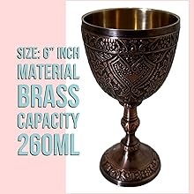 Luxurious Brass Wine Goblet Copper Antique Gothic Theme Game of Thrones Beer Chalice Goblet 240ml (Pack Of 1)