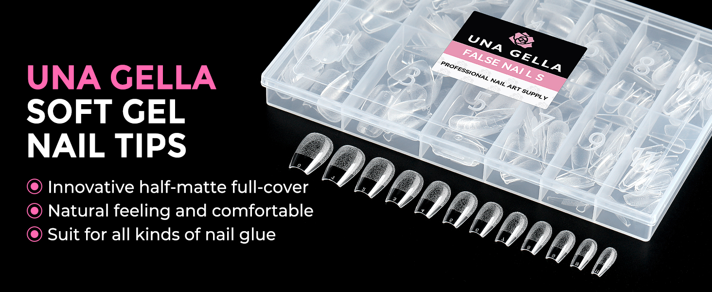 UNA GELLA Short Coffin Nail Tips offer 216 pre-shaped, soft gelly tips in 12 sizes designed for easy, natural-looking nail extensions. These durable, flexible tips provide a salon-quality finish that lasts over 21 days, perfect for DIY enthusiasts seeking a flawless manicure without the hassle or cost of professional salons.