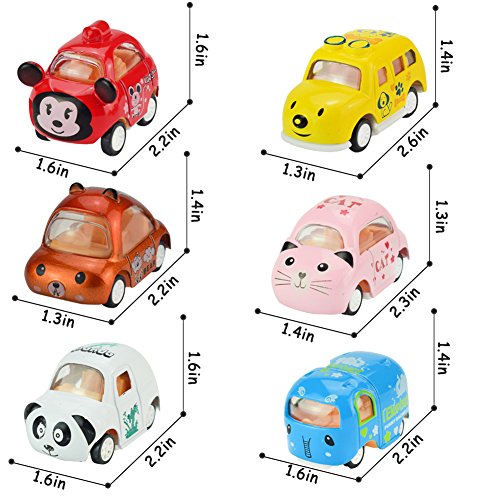 Feature Cute Cartoon Animal Vehicles Set 6 Set Mini Cartoon animal shape, dog,cat, elephant, bear,panda,mouse, Bright and Colorful,very cute and lovely. Early Education and Entertaining function.Teach your kids to identify and understand the different animals and cars, enhance the baby's curiosity. Pull Back Cars Built-in winding,don't need battery driven, pull back and go, very funny and convenient. Premium Alloy Die-cast Vehicles Playset The car whole body made of premium quality alloy, Safe and non-toxic, they are very durable,anti-wear and fall resistant. Perfect Mini Car Toy Gift Great lovely toy gift for boys and girls toddler above 3 years up, enjoy interact with children in party time! Corner Smooth Design Will be comfort for kids to handle and carry in pocket.No sharp point so will not hurt kids by accident. Specification Name:6-Pack Cute Animal Pull Back Vehicles Applicable age: 3 years old + Product material: High quality Alloy material Box Size: 3.94*1.57*13.78inch Product packaging: color box packaging Packing list: 1* Dog Car,1*Cat Car, 1*Elephant Car,1*Bear Car,1*Panda Car,1* Mouse Car