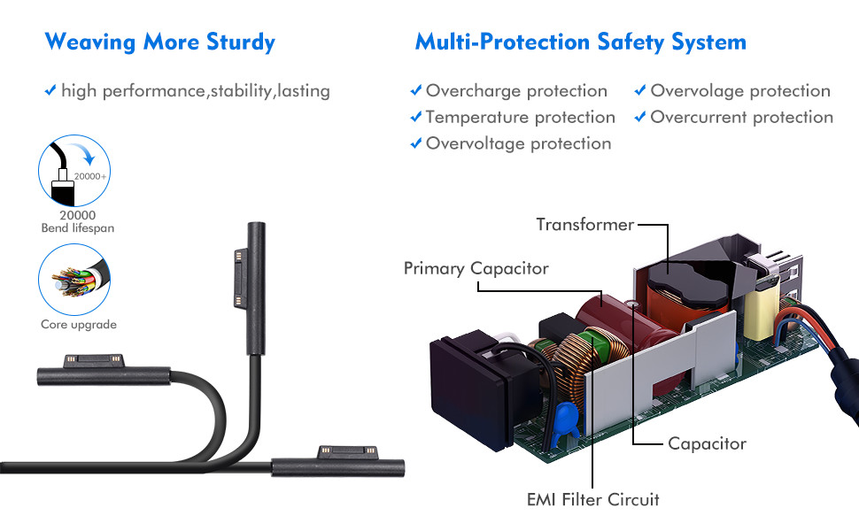 The VINSOC 65W Charger is a certified, high-performance power adapter designed for Microsoft Surface laptops and tablets. Featuring a magnetic connector for easy use, a 65W fast charging output, and an additional USB port for simultaneous device charging, it ensures efficient and safe power delivery. Compatible with a wide range of Surface models, it offers dependable protection against overcharging and overheating, backed by a 12-month warranty and customer support.