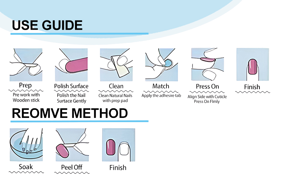 Nails are really pretty and worth the price.It is water proof and very strong even when you use the glue or the glue tab.The stickiness is strong but doesnโt harm your real nail.It is very easy to apply and remove.There wasnโt a nail size problem for me but they give you a nail filer to reshape it according to you.Itโs really good and amazing.