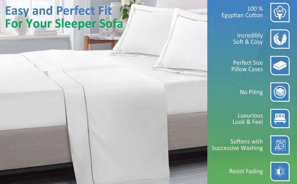 Queen Sleeper Sofa Bed Sheet Set - White 100 Percent Egyptian Cotton (60"x74"x6") 600 Thread Count