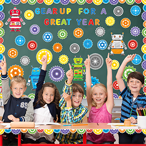 The Christmas 129Pcs Gear Robot Bulletin Board Cutouts set by AsodSway features 129 high-quality, lightweight cardboard pieces including gears, robots, borders, and glue dots. Designed with vivid 3D printing and easy peel-and-stick application, this versatile decoration kit is perfect for classrooms and educational spaces, encouraging students to embrace a better year with dynamic, eye-catching visuals.