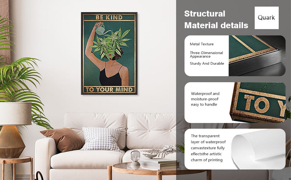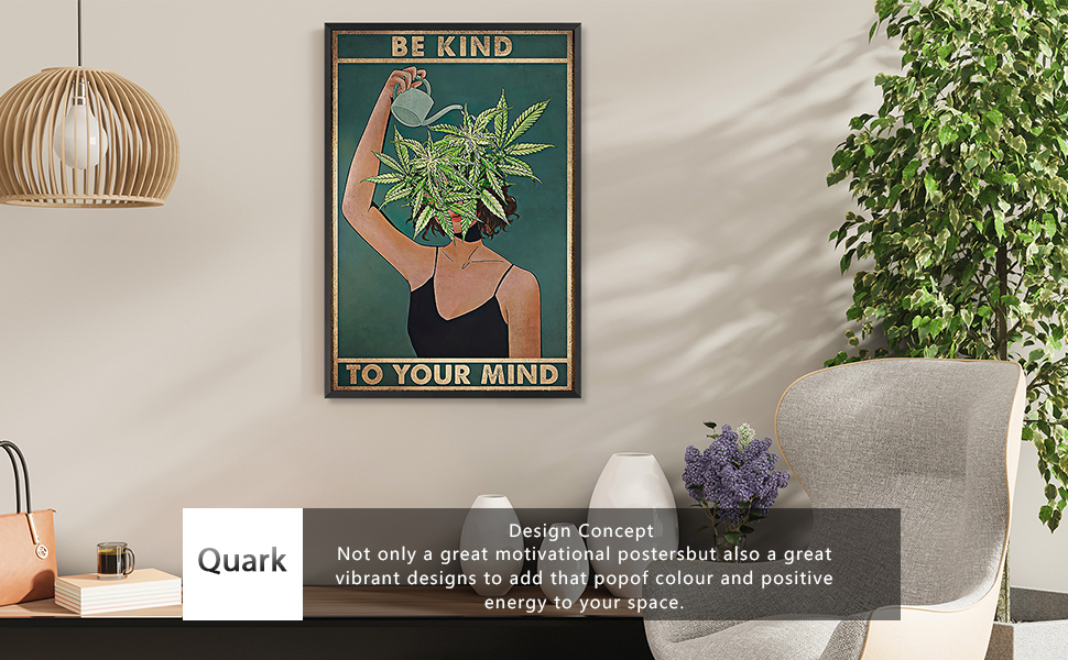 The Quark Vintage 'Be Kind To Your Mind' poster is a modern, minimalist botanical art print available in three versatile sizes. Printed on premium canvas with eco-friendly inks, it offers vibrant, natural color transitions ideal for home or office decor. Designed to enhance mental wellness spaces, it also makes a meaningful gift for women and loved ones. Each print undergoes strict quality control and comes with a hassle-free return policy for confident shopping.