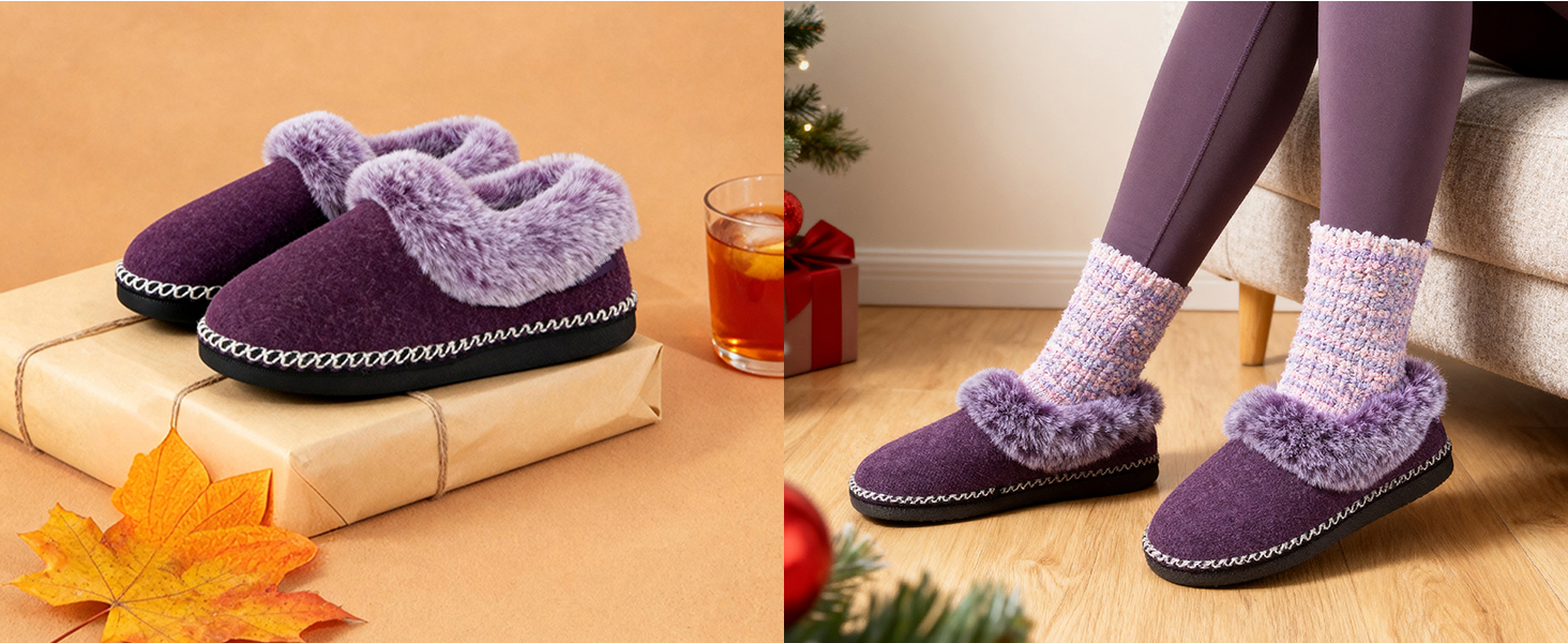 Women's Bootie Slippers Warm Soft Comfy Memory Foam Non-slip Indoor House Shoes with Fluffy Collar