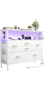 This Glacier White dresser features 8 spacious drawers crafted from water-resistant engineered wood, supported by a sturdy steel frame. Its leather-finish accents and wood top add a modern touch, making it a versatile and durable storage solution for bedrooms, nurseries, hallways, or living rooms.