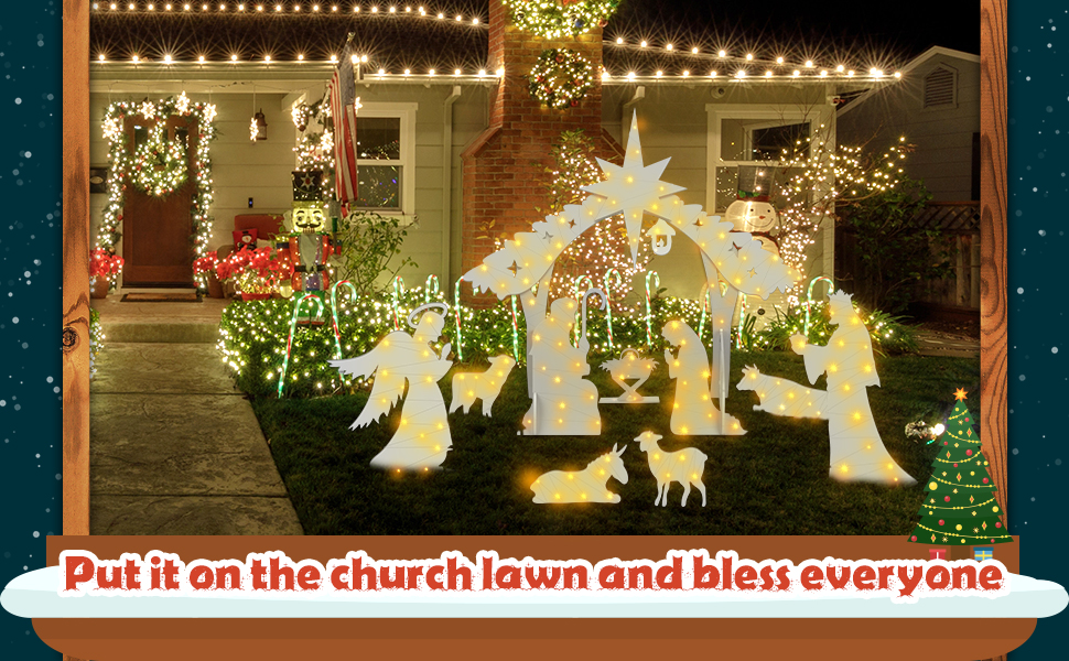 Soaoooutdoor White Nativity Scene With 2 String Lights Silhouette Yard | Desertcart Tunisia