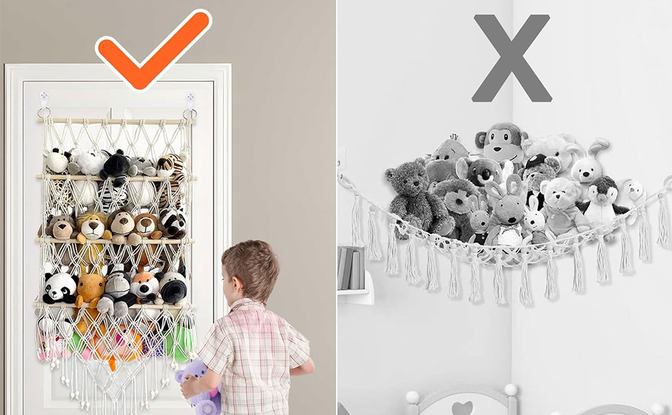 The Excefore Stuffed Animal Toy Hammock is a 3-layer, height-adjustable plush toy organizer designed to hold up to 15kg of toys. Easy to install with included hooks, it offers a stylish and practical solution for decluttering kids’ rooms while encouraging organization and responsibility.