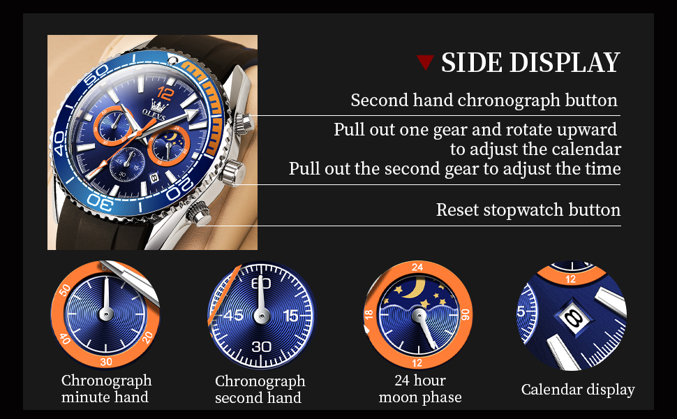 OLEVSMens Watches Chronograph Waterproof Luminous Silicon Strap Multifunction Watches for Men Quartz Business Calendar Men Wrist Watch
