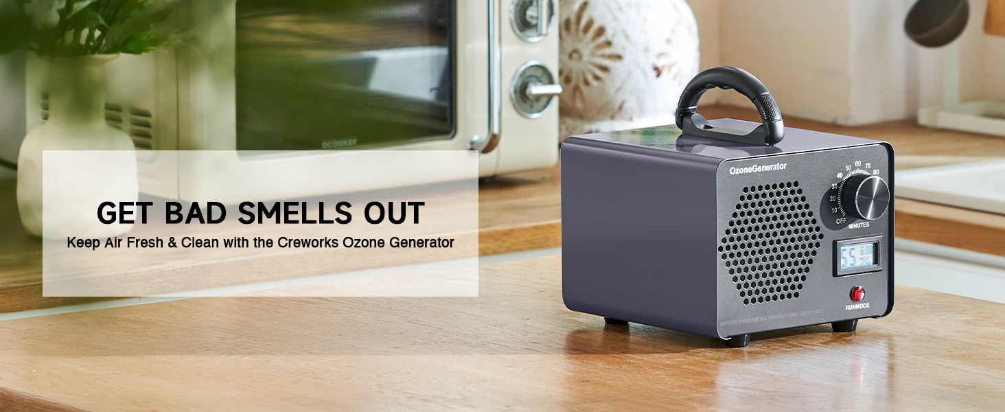 The CREWORKS Ozone Generator is a high-capacity air purifier that produces 5000 mg/h of ozone to effectively eliminate tough odors in spaces up to 3200 sq ft. With a user-friendly timer and real-time environmental feedback, this portable device is perfect for homes, offices, and vehicles, ensuring a fresh atmosphere wherever you go.