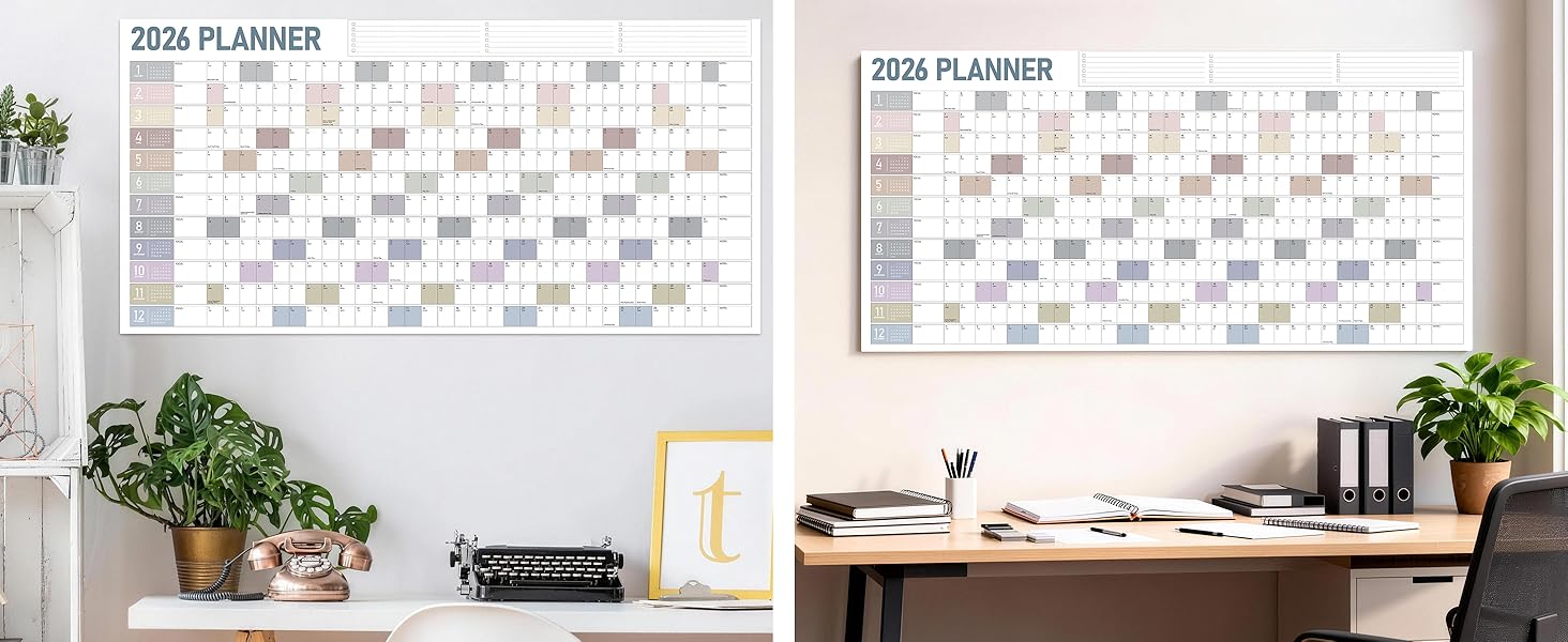 The GuassLee Large Yearly Wall Calendar 2026 is a premium 24"x48" one-page planner designed for professionals who demand clarity and flexibility. Featuring a waterproof, dry and wet erase surface on high-quality 250 GSM coated paper, it offers vibrant color-coded monthly themes and dedicated event tracking areas to keep your entire year organized and visually inspiring.