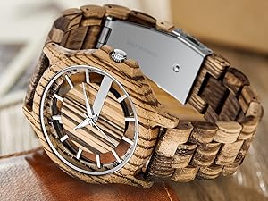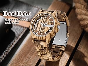 Special features: Brand: bosni Gender: Male Watch style: Casual,Fashion,Retro Movement type: Quartz watch Shape of the dial: Round Display type: Analog, Date Hour formats: 12 Hour Case material: Wooden Band material: Wooden Clasp type: Folding clasp Size & Weight: Wearable length:24 cm Band length: 25 cm (Adjustable) Band width: 2.3 cm Dial diameter: 4.3 cm Dial thickness: 1.1 cm Band thickness:0.5 cm / 0.19 inches Product weight: 0.050 kg Package weight: 0.110kg Package Contents: 1 x Quartz Men Watch 1 x Box 1x English instructions 1x remove link tool Maintenance points of the wood watch: 1.Try not to get wet or soak in the water in daily life 2.Wipe the watch at intervals, the color would be more bright 3.Don't strike or pull the watch too violent 4.Clean the stains frequently Wood Watch Introduce: natural wood watch is handmade with 100 % natural wood material without paint,it is very lightweight and comfortable to wear.It is retro unique cool style handmade watch. Notice: Made of 100% natural wood,there may be some spots on the watch, It is not the quality problem.And also maybe the natural colors of them are slightly different from each other and color difference.