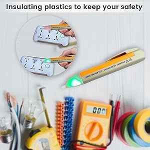 The amiciTools Touchless Voltage Detector Pen offers safe, non-contact AC voltage detection from 90 to 1000 volts with audible and visual alerts. Its compact, battery-powered design includes a frequency range of 50-500Hz and doubles as a screwdriver, making it an essential, versatile tool for professionals and DIYers alike.