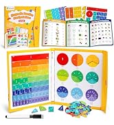 The D-FantiX Magnetic Fraction Educational Puzzle is a premium Montessori-inspired math manipulative set featuring 102 magnetic fraction tiles and circles, a magnetic board, and dry erase activity cards. Designed for elementary students, it offers a hands-on, visual approach to mastering fractions from halves to twelfths. Its durable, brightly colored pieces and portable size make it ideal for classroom, homeschool, or on-the-go learning, helping kids build confidence and fluency in fractions through interactive play.