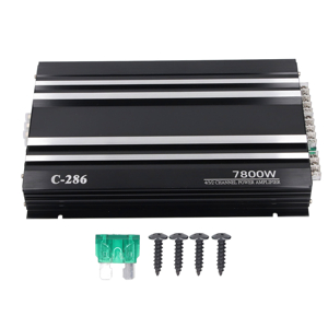 The C-286 4 Channel Class AB Amplifier by SASKATE delivers up to 7800W max power through four 100W channels, engineered with SQ Sound Enhancement for optimized frequency output. Its compact aluminum alloy design ensures durability and easy installation, making it an ideal upgrade for cars, trucks, boats, UTVs, and motorcycles seeking rich, dynamic bass and crystal-clear audio performance.