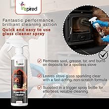 Inspired Stove Glass Cleaner is a 500ml UK-made liquid solution designed to quickly dissolve soot, grease, tar, and burnt deposits on wood-burning stove glass. Its non-scratch, fast-acting formula comes in a convenient trigger spray bottle, delivering a sparkling, streak-free finish that enhances your fireplace experience.