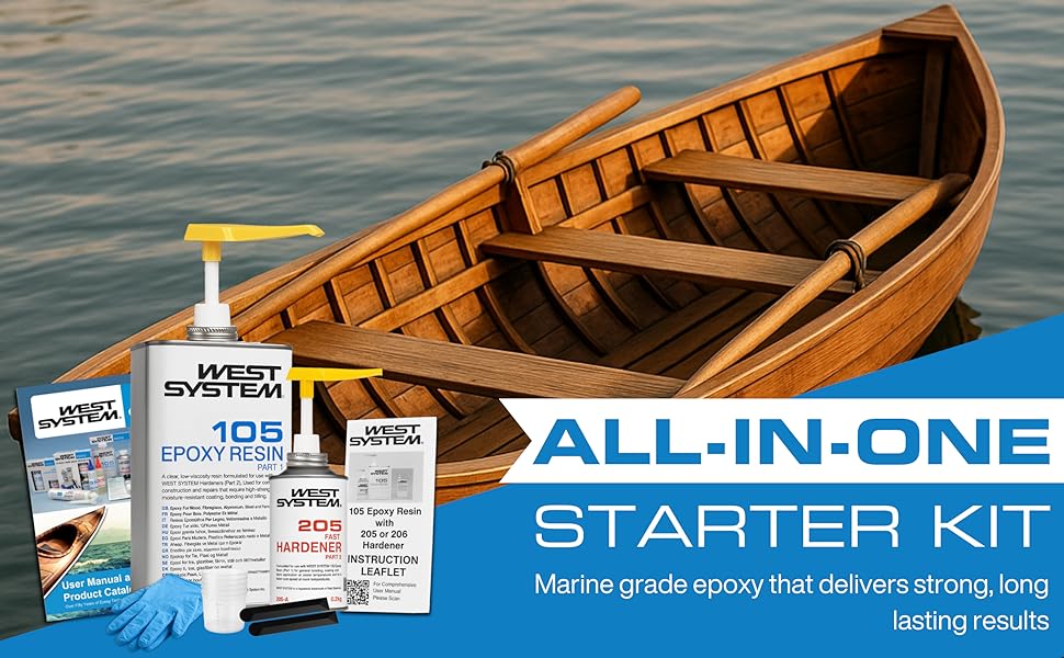 The WEST SYSTEM 105/205 Epoxy Resin & Hardener Starter Pack is a marine-grade, two-part epoxy system designed for superior bonding on wood, metal, fibreglass, and polyester surfaces. This waterproof, fast-curing kit includes all necessary tools for immediate use and ensures no post-cure shrinkage, making it ideal for demanding outdoor and structural repair projects.