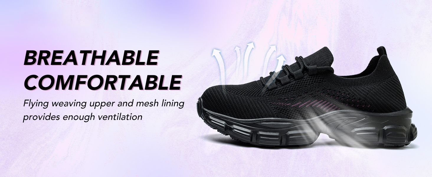 COOUSafety Shoes for Women Lightweight Steel Toe Cap Trainers Breathable Ladies Safety Toe Trainers Non Slip Protective Shoes Black