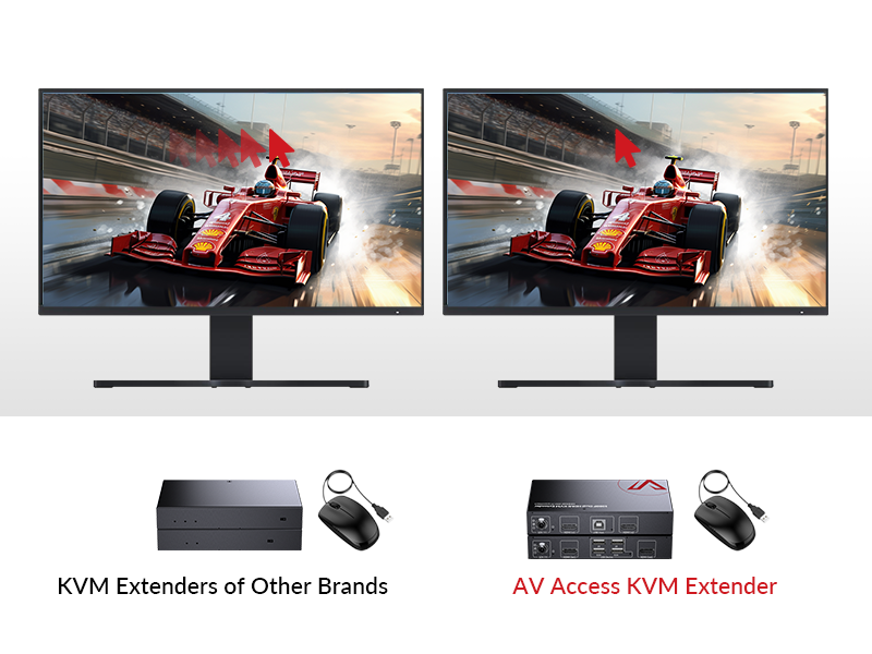 The AV Access 4K HDMI KVM Extender delivers ultra-high-definition video up to 4K@30Hz and 1080P@120Hz over a single Cat5e/6 cable spanning 120 meters. Featuring zero latency and three USB 2.0 ports, it enables seamless remote control of PCs and peripherals, making it ideal for gaming, data centers, and classrooms. Its plug-and-play design ensures effortless setup without software, combining professional performance with portability.