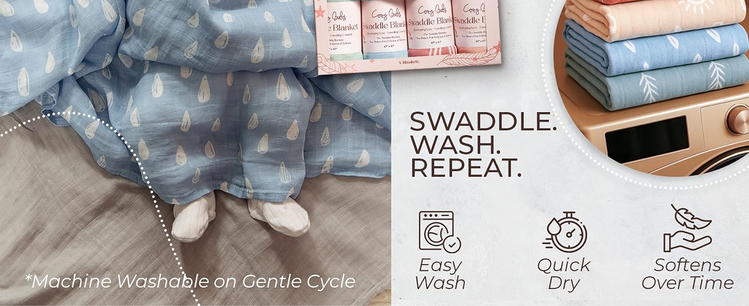 These 47x47 inch muslin swaddle blankets offer breathable, silky-soft comfort designed to soothe newborns and promote restful sleep. Crafted from skin-friendly fabric, they serve multiple nursery needs—from swaddling to nursing covers—while maintaining durability and style through easy machine washing. Perfect as a thoughtful baby shower gift or daily essential for modern parents.